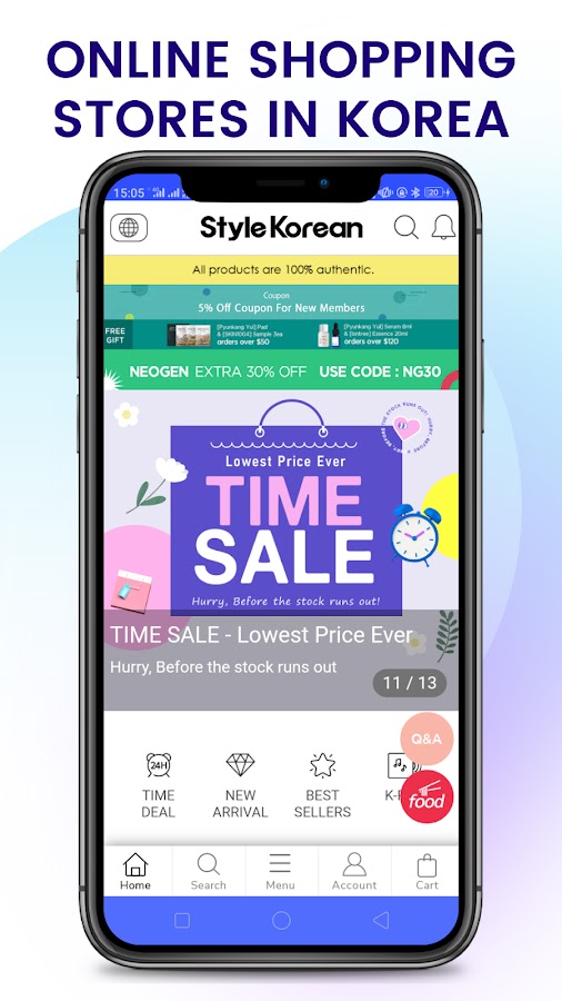 Только в приложении «Онлайн-шопинг в Южной Корее — Korea Shopping» вы сможете найти лучшие предложения и скидки. Лучшие функции включены в корейское приложение для онлайн-покупок. Получите скидки на каждую покупку.