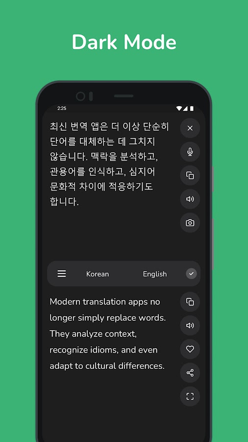 • Мгновенный перевод: получайте быстрые и точные переводы с корейского на английский и наоборот, идеально подходящие для повседневного использования.