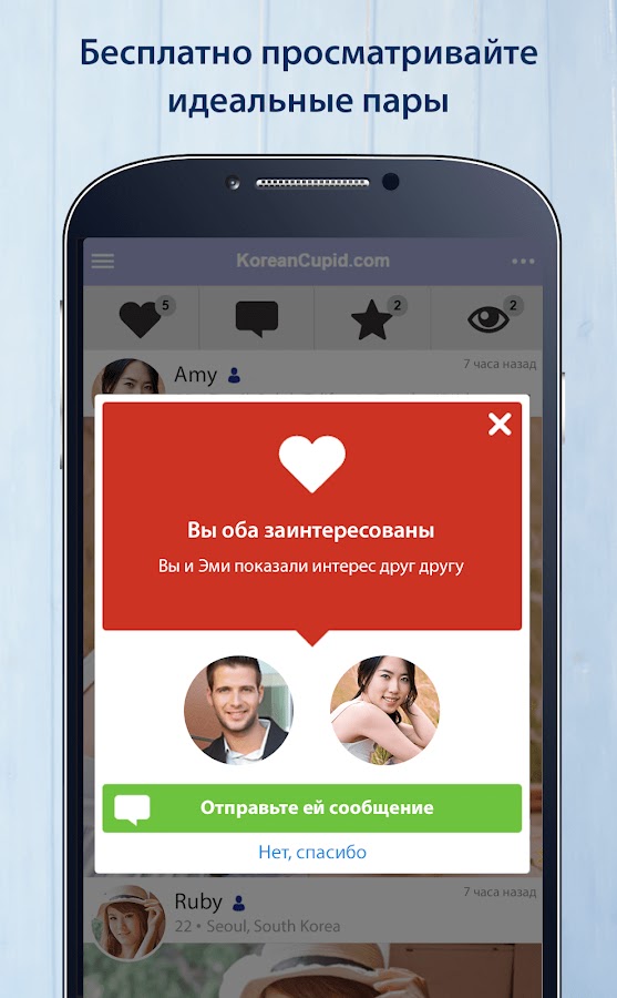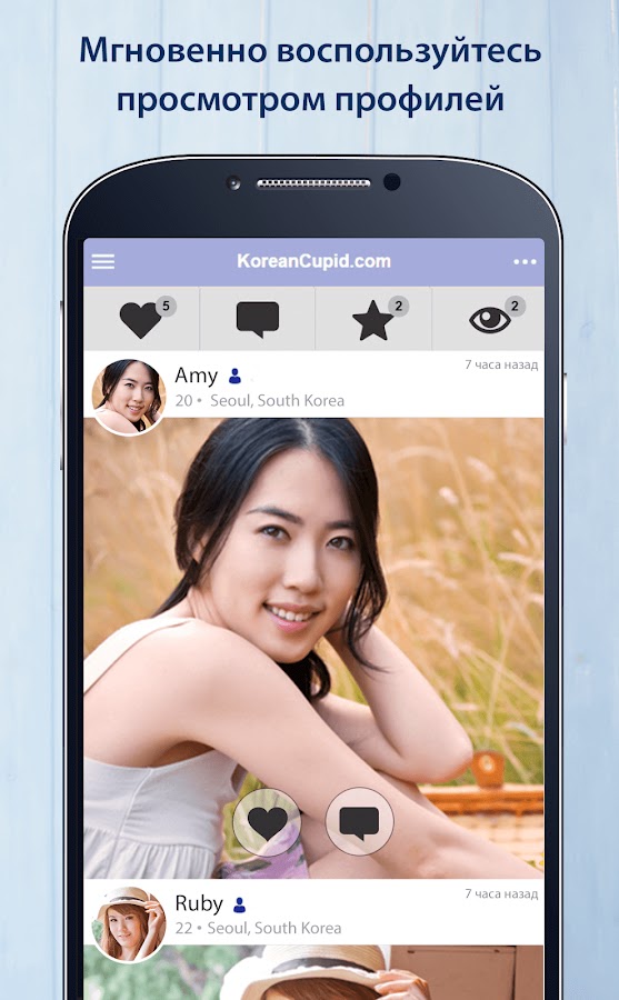 KoreanCupid — это ведущее корейское приложение для знакомств, созданное для объединения корейских одиноких с их идеальными парами со всего мира. Мы являемся одним из самых надежных азиатских приложений для знакомств онлайн, которое объединяет корейских женщин и мужчин с их идеальными парами, помогает им влюбляться и знакомиться со своими потенциальными партнерами. Если вы хотите испытать настоящее приложение для знакомств, KoreanCupid — это приложение именно для вас. Независимо от того, ищете ли вы корейский чат, корейского сингла в поисках брака, ищете любовь на местном или международном уровне, мы стремимся помочь вам найти вашу идеальную корейскую пару. Этот корейский сайт знакомств — лучший способ познакомиться с корейскими и азиатскими синглами. KoreanCupid насчитывает более 700 тысяч пользователей по всему миру, состоящих из азиаток, южнокореянок и мужчин и женщин со всего мира. С помощью мобильного приложения KoreanCupid вы можете создать учетную запись и начать писать свою историю любви за считанные минуты. Загрузите приложение сейчас и начните просматривать профили, чтобы пойти на свое первое азиатское свидания!