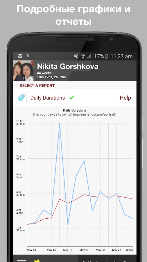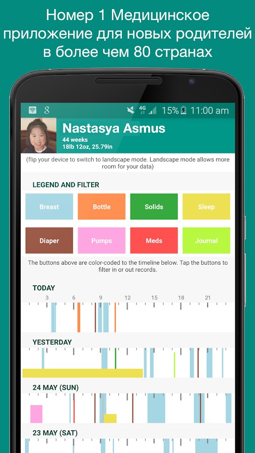 Поддержка графиков, отчетов и различных тем! Экспорт данных и напоминания. Подходит для молодых родителей детей от 0 до 5 лет.