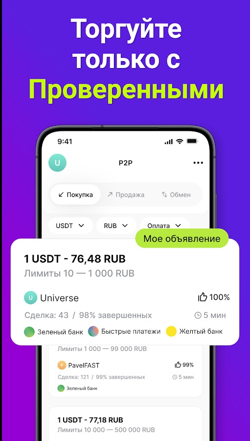 — P2P обмен — Обменивайтесь валютами из кошелька с пользователями напрямую без комиссии.