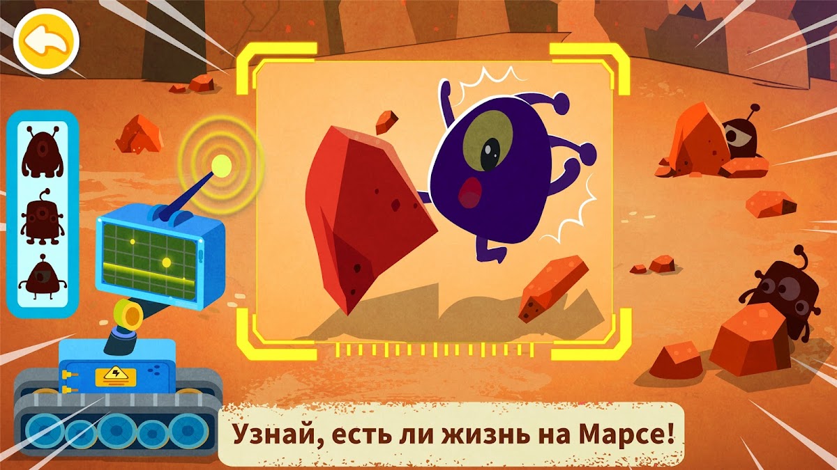 Высадись на Луне и раскопай полезные ископаемые. Возьми их с собой на землю и переработай в образцы. Есть ли жизнь на Марсе? Проверь, используя зонд, не спрятались ли за камнем инопланетные существа? Найди их.