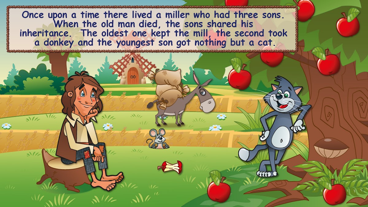 Когда-то очень давно жил мельник, у которого было три сына. Когда старик умер, братья поделили между собой отцовское добро. Старшему досталась мельница, среднему — осел, ну, а уж младшему пришлось взять себе кота.