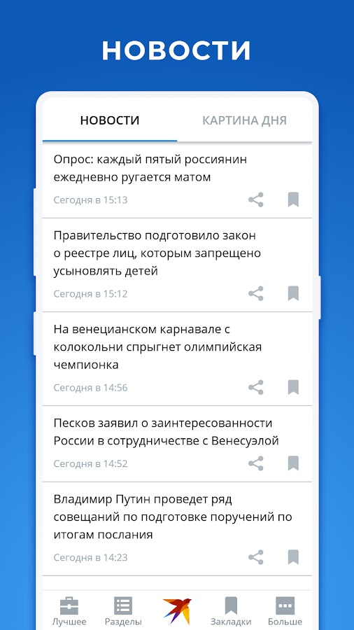 Удобный навигатор по разделам: новости спорта, политики, экономики и финансов, мира звезд, культуры и шоу-бизнеса и другие. Сенсации и расследования, интервью со знаменитостями, истории простых людей. Делитесь понравившимися заметками в соц сетях.