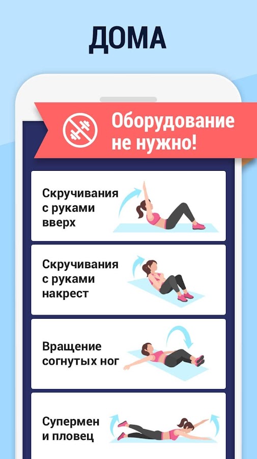 Анимации и видеоролики помогут правильно выполнять упражнения для наилучшего результата. Вам не нужно будет оборудование, поэтому тренироваться можно где угодно в любое время.
