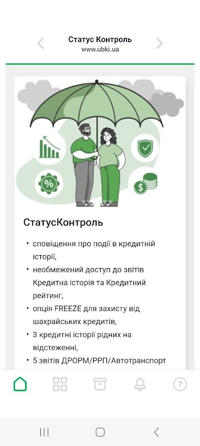 Приложение для контроля своей кредитной репутации от Украинского бюро кредитных историй – крупнейшего провайдера информации о заёмщиках в Украине.