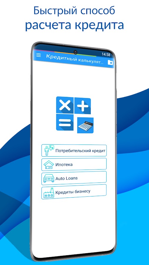 Скачайте приложение Кредитный калькулятор для Android бесплатно - последняя версия (21.00 sdk36) уже доступна для установки на ваш телефон или планшет.