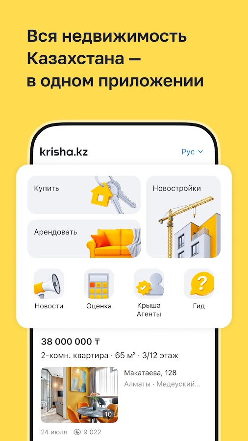 Krisha.kz-ті жүктеп алып, жылжымайтын мүлікке қатысты барлық мәселені бір қосымшада шешіңіз.