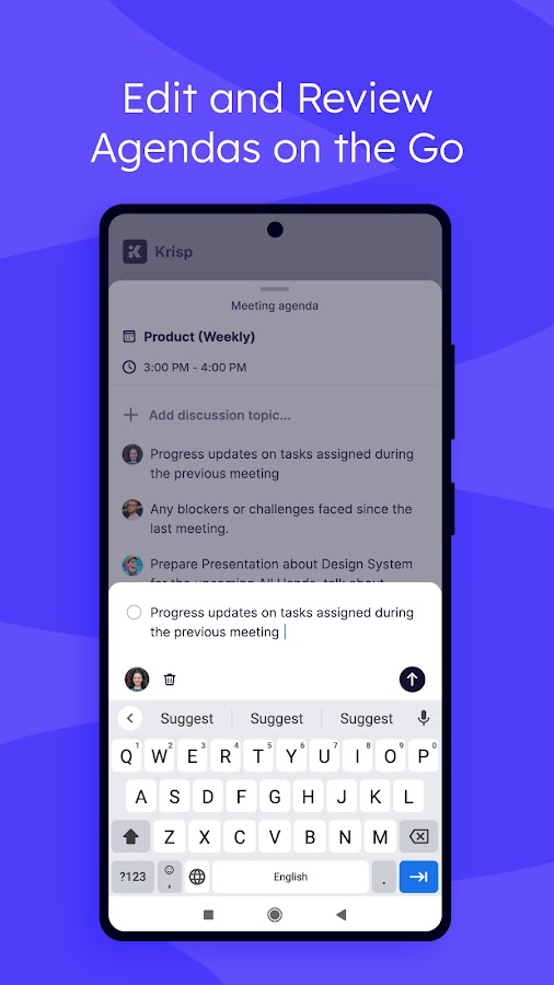 Krisp помогает вам сосредоточиться на разговоре, а не на записи. Независимо от того, работаете ли вы удаленно, встречаетесь лично или загружаете записанные файлы, Krisp обеспечивает удобство ведения заметок с помощью искусственного интеллекта.