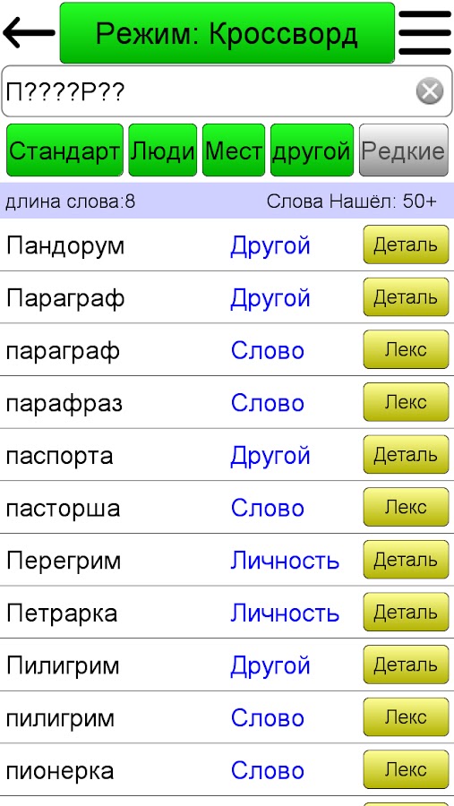 — Очень большой список слов, разбитый на общие и редкие списки, чтобы помочь вам найти правильный ответ