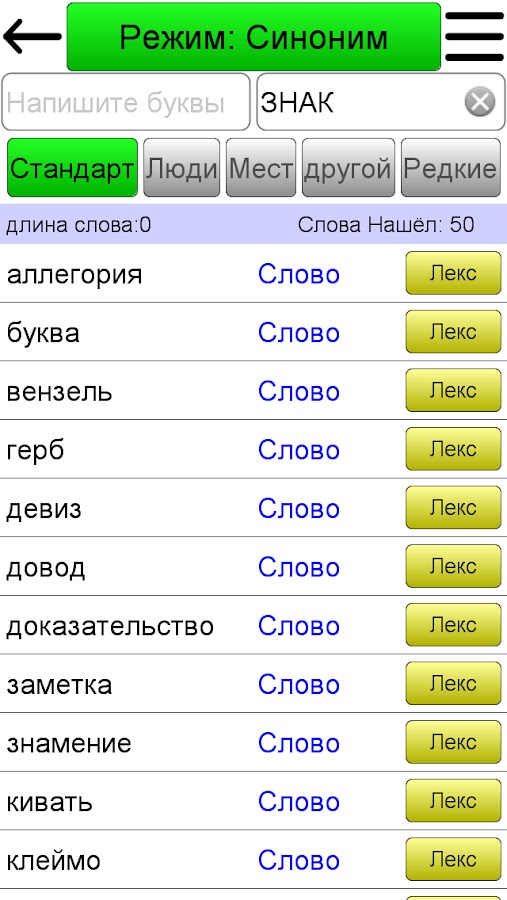 Это приложение поможет вам разгадывать русские кроссворды и другие подобные игры со словами.. Приложение использует уже знакомые вам буквы, чтобы найти список возможных ответов..