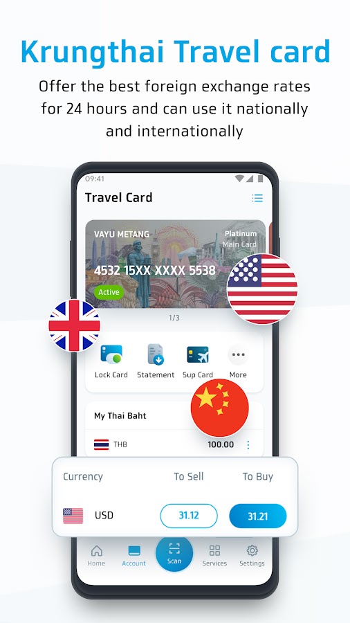 • Используйте свои карты Krungthai Travel Card по лучшим обменным курсам.