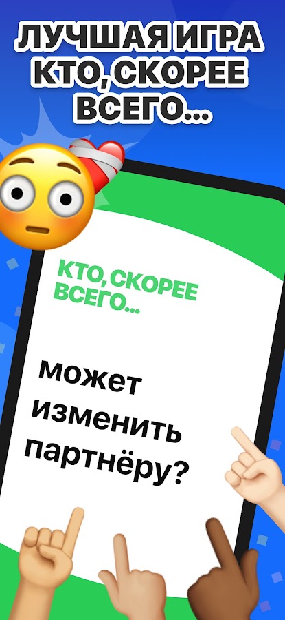 Кто из нас: Игра с вопросами — это идеальная игра для вечеринок 18+, которая заставит всех смеяться, смущаться и показать своё истинное лицо — самым весёлым способом! Лучшая игра для компании и мобильный хит в стиле ‘было не было’, ‘я никогда не’ и ‘правда или действие’.