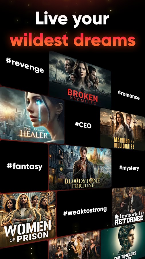 Dive into a world of entertainment with unique characters and thrilling plot twists in stories of Love, Action, Crime, Horror or Drama. Listen to Luka’s Redemption, Secret Billionaire, Timeless Healer, Checkmate Billionaire and many more.