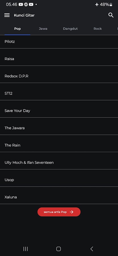 Гитарные аккорды REGGAE, затем Гитарные аккорды DANGDUT, Гитарные аккорды POP, Гитарные аккорды индонезийской группы и многие другие.