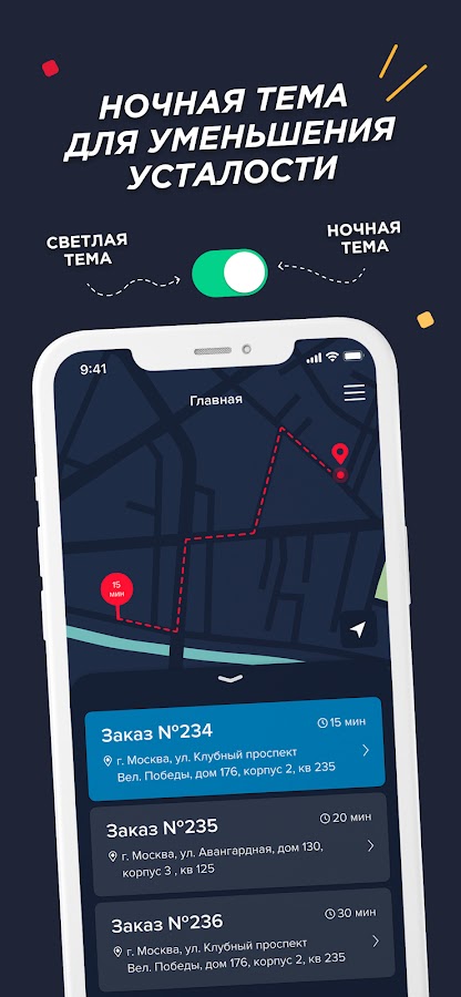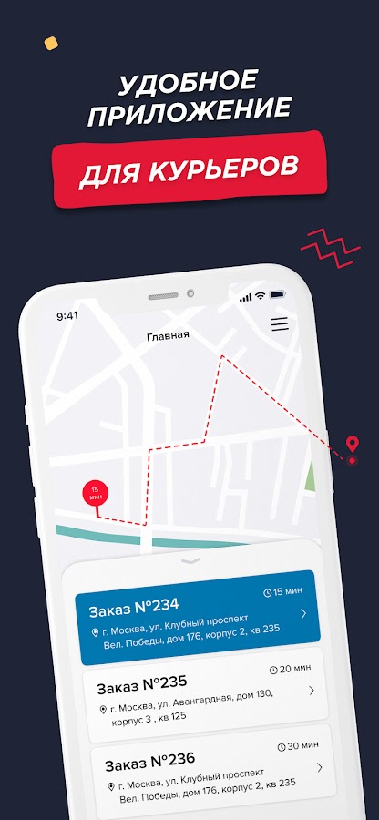 • увидеть заказы на карте и построить оптимальный маршрут
