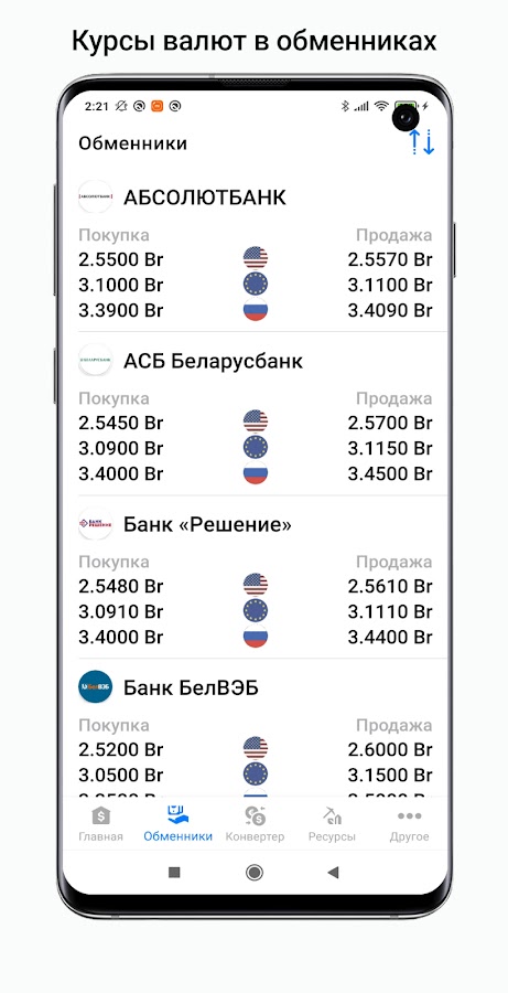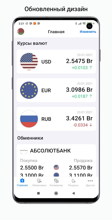 Скачайте приложение Курсы валют Беларуси для Android бесплатно - последняя версия (2.2.9) уже доступна для установки на ваш телефон или планшет.