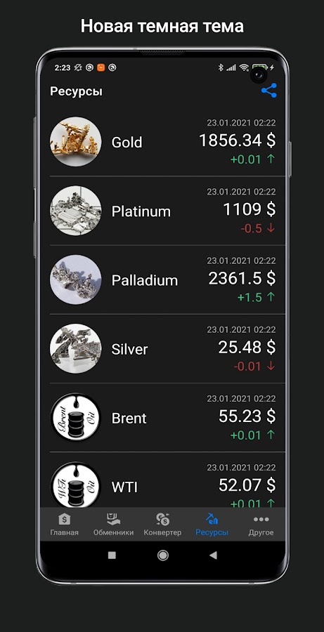 Курсы валют Беларуси– удобное и простое в применении приложение, которое поможет Вам узнать ежедневные обновления курса валют Национального Банка Республики Беларусь и котировки валют банков 2-го уровня, а также обменных пунктов. Узнать стоимость нефти различных марок и драгоценных металлов.