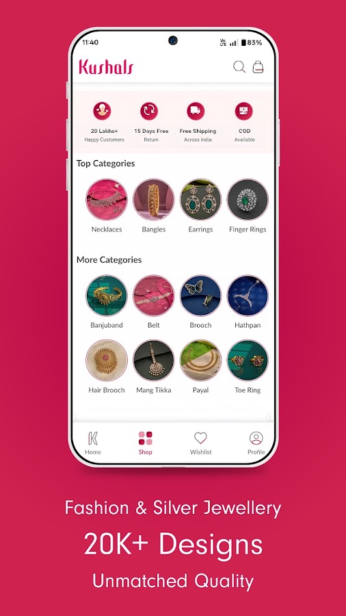 Приложение Kushals Fashion Jewellery предлагает вам тщательно отобранный мир доступных по цене модных украшений и изделий из серебра 925 пробы с клеймом BIS, которые так любят женщины по всей Индии.