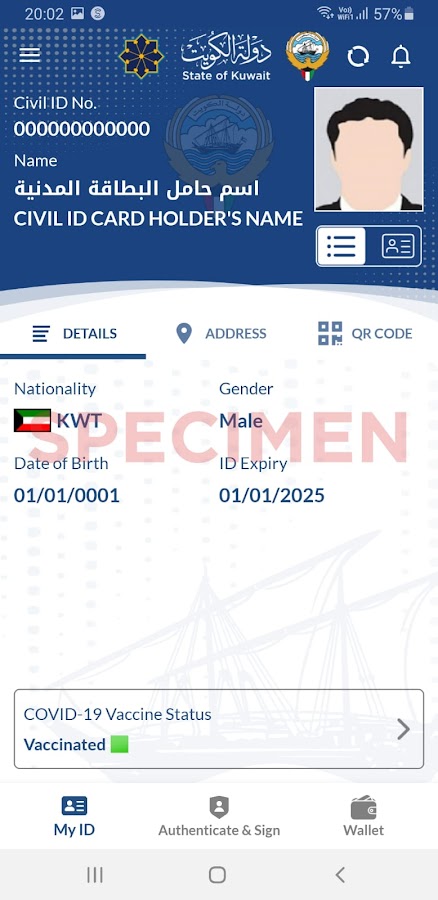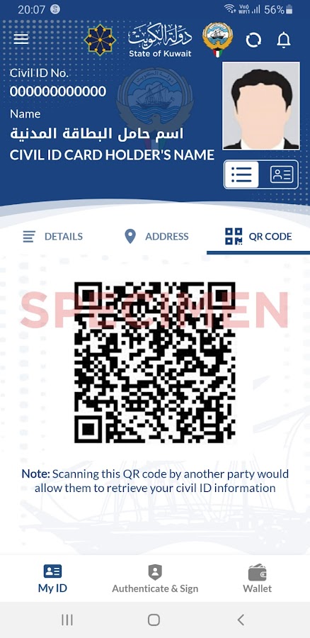 Это приложение предоставляет гражданину и жителям в штате Кувейт цифровой идентификатор, который может быть использован для следующих целей и более: