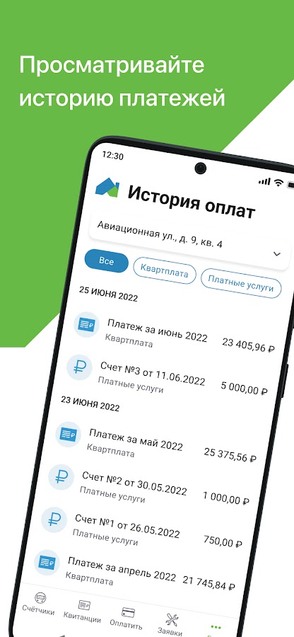 • Просмотр квитанций за жилищные, коммунальные и прочие услуги;