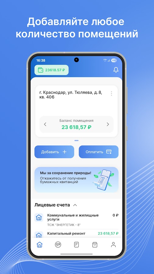 Все квартиры в одном приложении: добавляйте и контролируйте любое количество помещений.