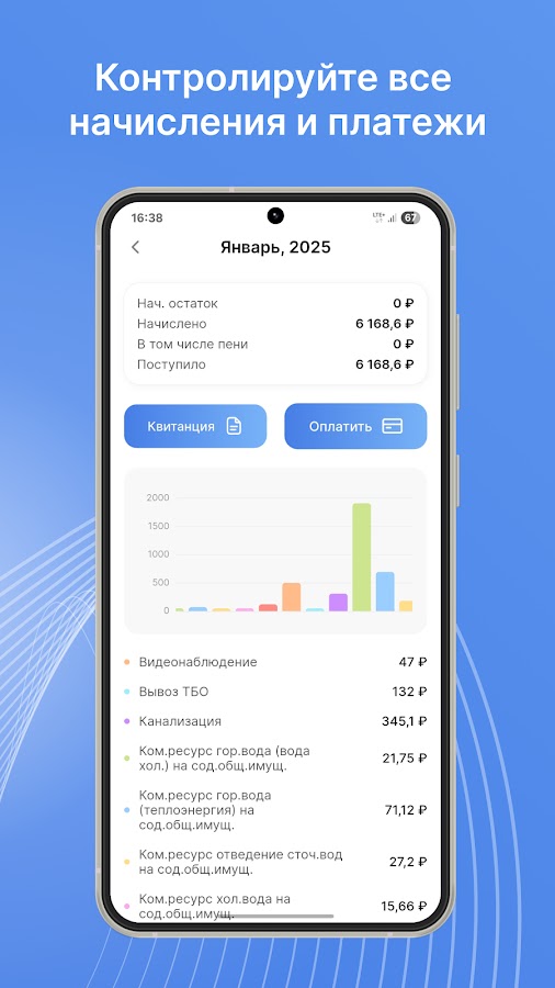 Контроль задолженности: подробная информация обо всех начислениях и платежах.