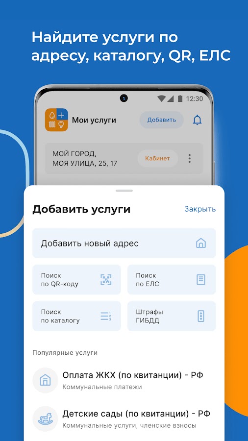 Оплата ЖКУ и других услуг одной кнопкой. Быстрый поиск по адресу и передача показаний счетчиков онлайн!