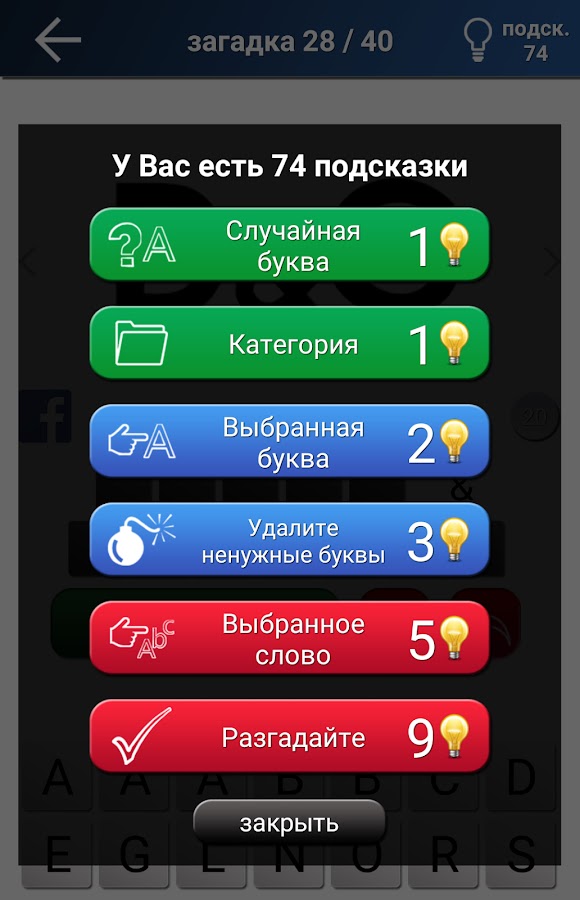 * аж 6 разных подсказок , которые помогут Вам разгадать загадки;