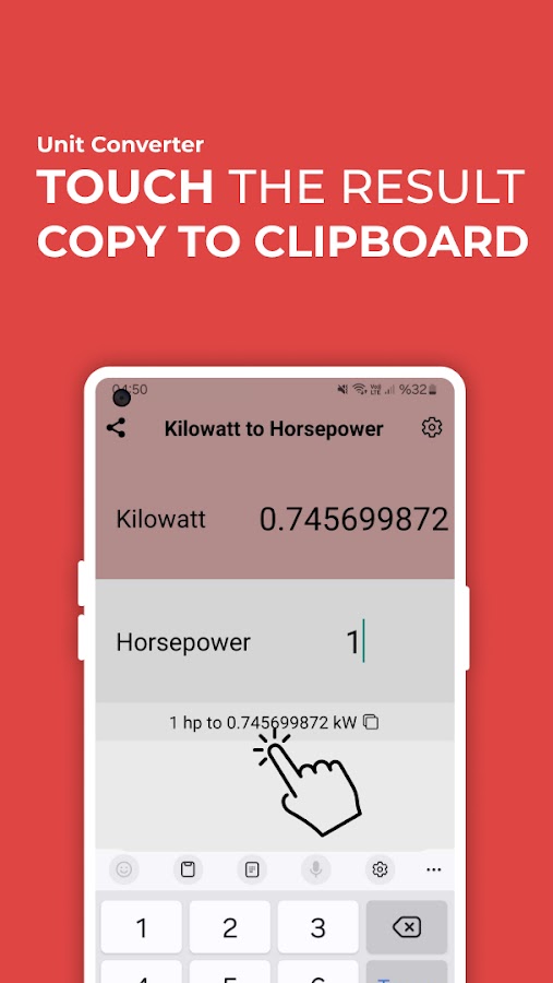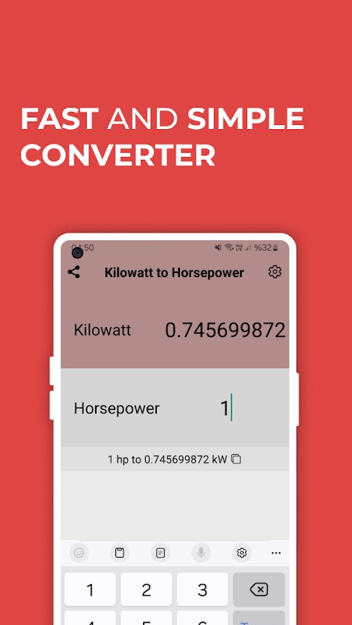 ⚡ **Процесс конвертации без усилий:** Использовать наше приложение так же просто, как 1-2-3. Просто коснитесь поля ввода Киловатт, введите свое число и мгновенно преобразуйте его в лошадиные силы. Аналогичным образом коснитесь поля ввода «Лошадиная мощность», введите свое число и вы увидите, как оно быстро преобразуется в киловатты.