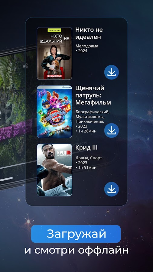 Киевстар ТВ – онлайн телевидение в телефоне с контентом от украинских и зарубежных телеканалов в HD качестве для большинства каналов. Пользователям доступна широкая онлайн библиотека фильмов, сериалов, мультфильмов и шоу!