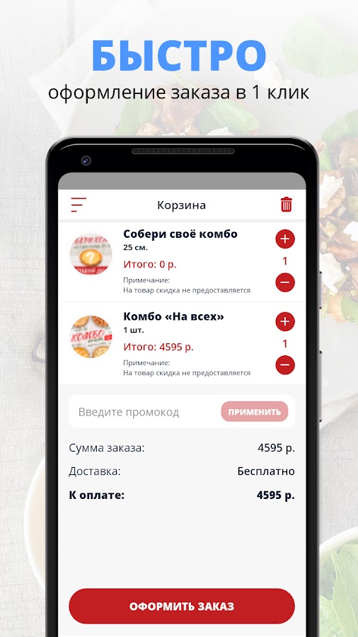 Чтобы оформить заказ, достаточно выбрать любимые блюда из нашего меню, положить их в корзину и отправить заказ онлайн в пару кликов.