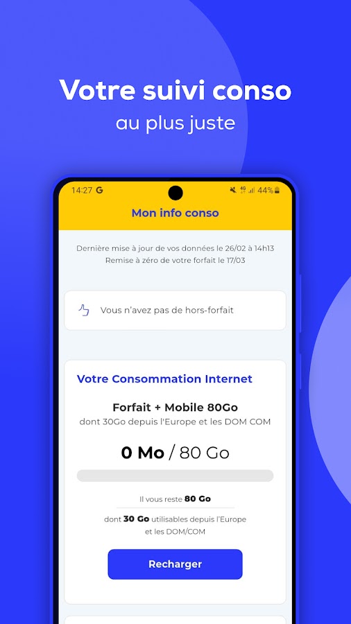 — Отслеживайте потребление Интернета, звонки, SMS/MMS во Франции и за рубежом и легко адаптируйте свой план с нашими опциями и пополнениями счета в соответствии с вашими потребностями.