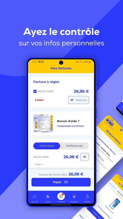 Ваше мобильное приложение, доступное в любое время и из любого региона Франции или за рубежом, позволяет вам с легкостью управлять своей мобильной линией.