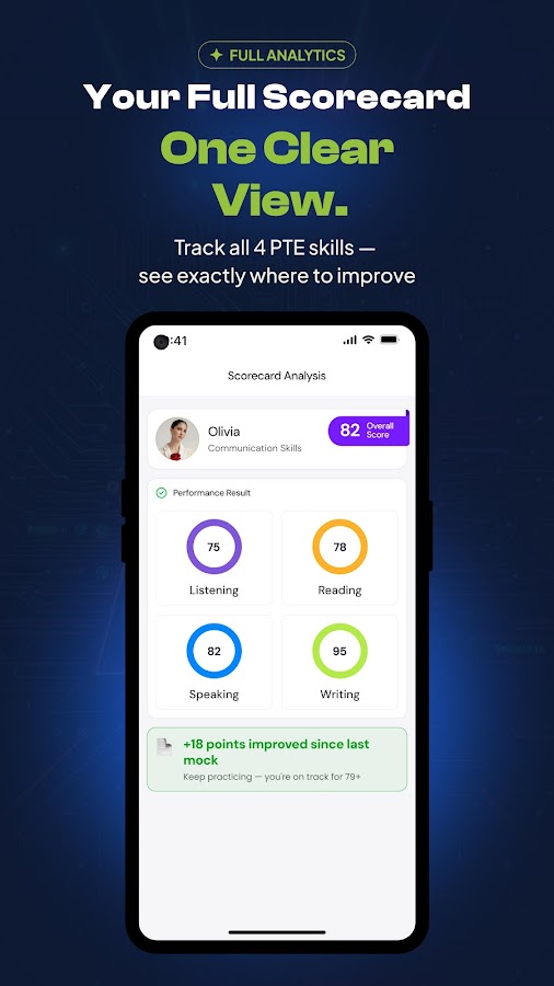 Наш ИИ не просто оценивает ваши пробные тесты PTE — он помогает вам добиться более высокого результата.