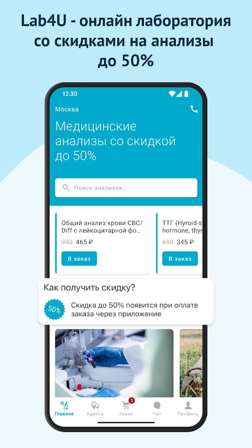 Описание Lab4U: анализы со скидкой