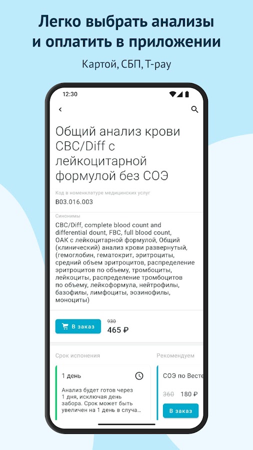 — оформляйте и оплачивайте заказ в приложении, а в медцентре только сдайте биоматериал;
