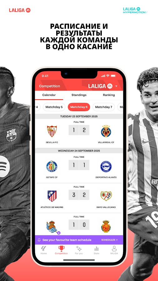 🕗Расписание и статистика: вся информация о сезоне LALIGA 2025/2026, Кубке Испании, Лиге чемпионов, Лиге Европы, Лиге F, Премьер-лиге, Бундеслиге и др.