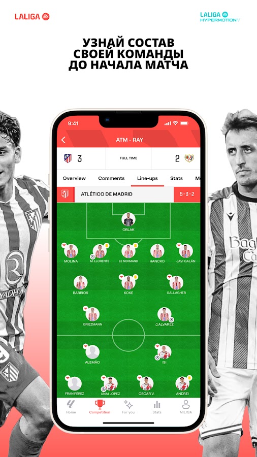 Наслаждайся каждым матчем и поддерживай свою команду. FC Barcelona, Real Madrid, Atlético de Madrid, Athletic Club… Все здесь, в LALIGA App Oficial! Следи за ElClásico и актуальными дерби в прямом эфире.