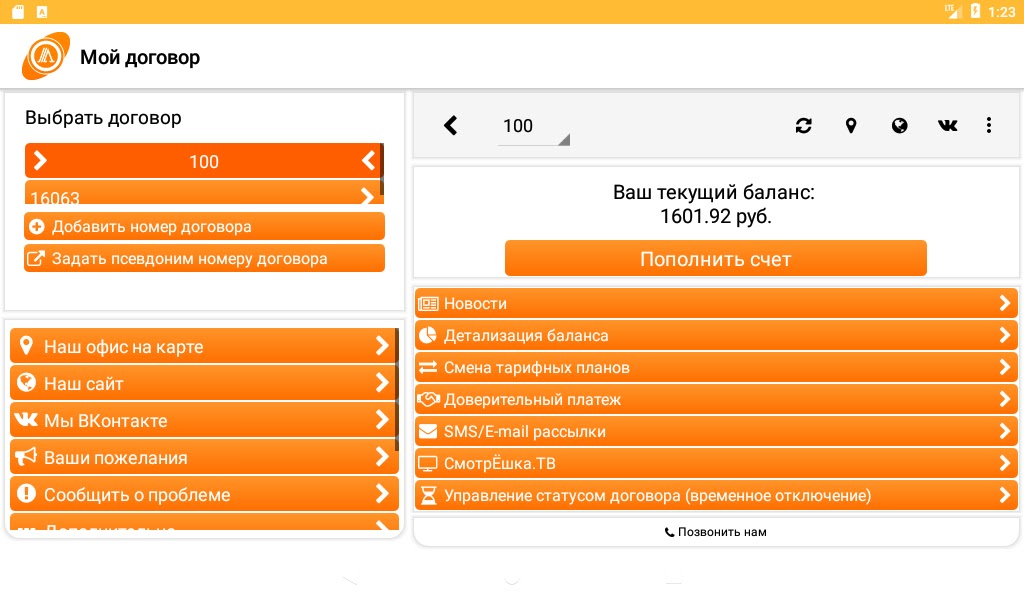 Просматривайте баланс, списания средств и историю платежей по любому из Ваших договоров.