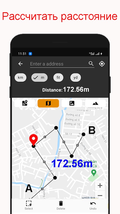 — Найдите любой адрес или место для измерения области и расстояния на картах. Приложение для расчета площади очень хорошо подходит для расчета высоты земли.