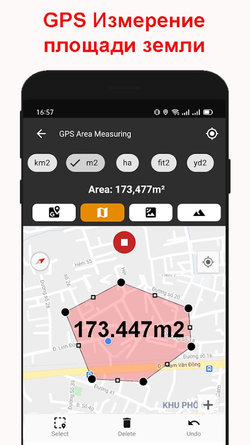 — Карта калькулятора расстояния, используемая для съемки и расчета площади земли на картах. Мы предоставляем множество функций, чтобы вы могли легко рассчитать точное расстояние и площадь земли. Укажите все места, которые вы хотите вычислить, и со 100% точностью измерить площадь с помощью единиц, которые вы можете проверить. Измерение площади вычисляет общую площадь всех точек, на которые вы указали.