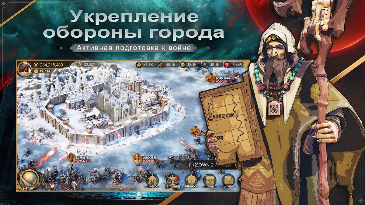 ・Вы сражаетесь не один! Заключайте союзы с другими могущественными Лордами на континенте, сражайтесь бок о бок в битвах и отвоевывайте земли у демонов. Трон ожидает вас! Разнообразный социальный геймплей, грандиозные батальные сцены. Вместе с союзниками предайте новую форму человеческой цивилизации и одержите всепоглощающую победу!