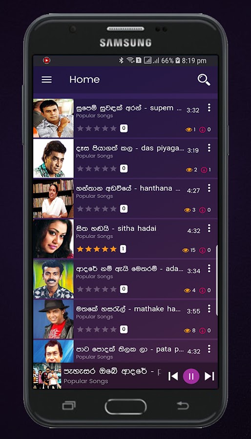 Это приложение имеет тысячи сингальских mp3 песни из всех художников в Шри-Ланке. Вы можете найти любую песню по имени исполнителя или название песни очень легко. Затем вы можете играть и скачать, что песни.