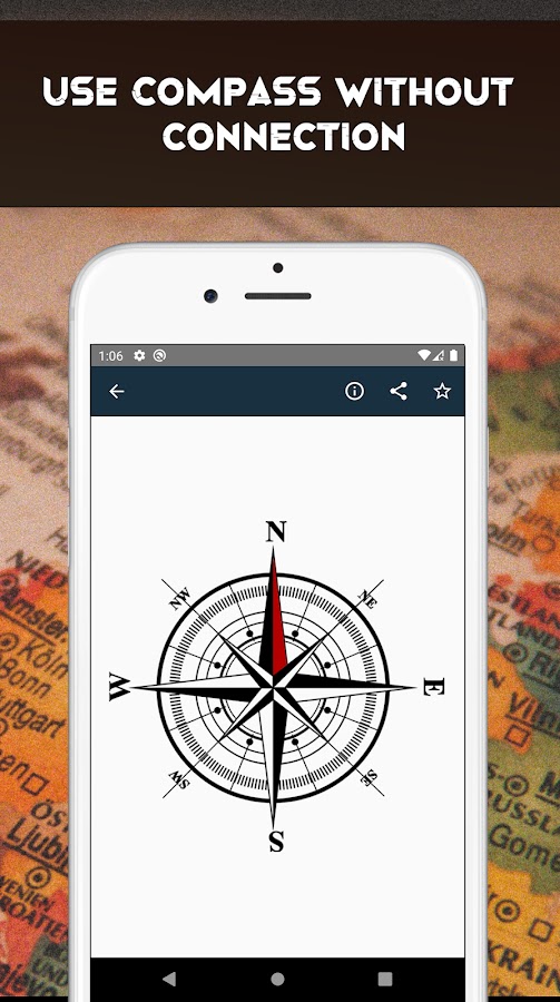 ✔ Используйте функцию компаса, чтобы помочь вам найти и сориентироваться, в каком направлении вы путешествуете и направляетесь.
