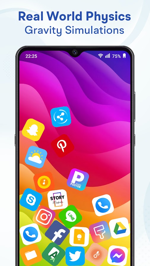 ✨ Игровая площадка гравитации: испытайте волшебство физики прямо на своем телефоне! Значок приложения и значок фотографии реагируют на законы гравитации. Одним движением пальца вы можете заставить их катиться, сталкиваться и искриться – это как миниатюрная галактика в вашем кармане!
