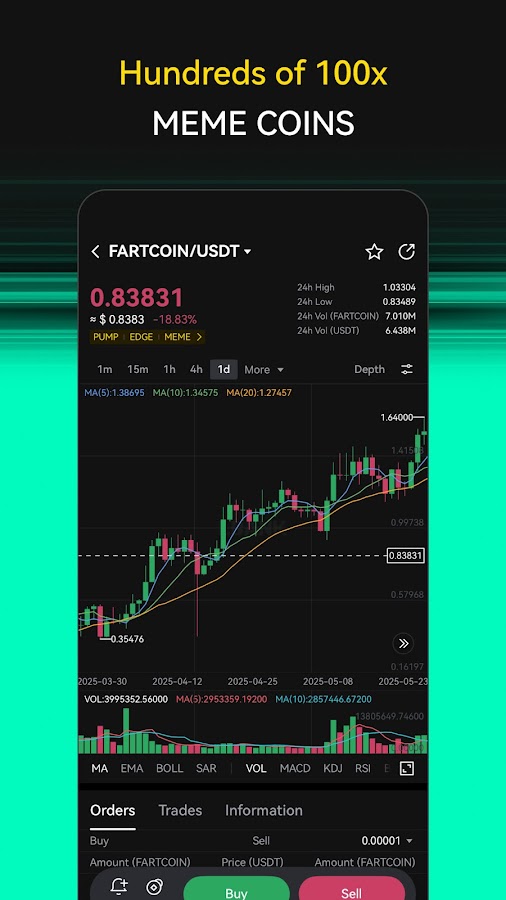 Платформа №1 для активов 100x (данные CoinGecko), охватывающая более 240 популярных мем-монет и более 50 высокодоходных пар мем-монет с высокой ликвидностью как для спотовых, так и для фьючерсных сделок. Листинг новых активов занимает всего 1 час с момента создания до начала торгов, предоставляя вам доступ к первопроходцу раньше других бирж и шанс получить следующий 100x Gem.