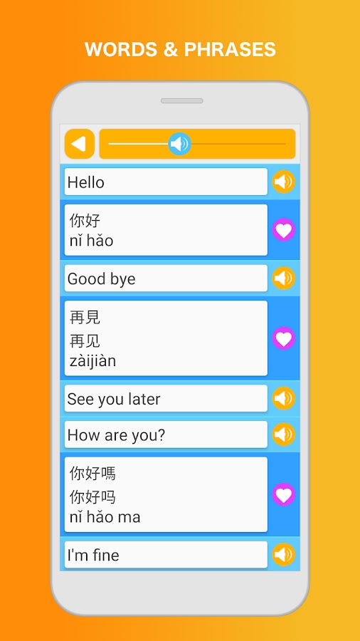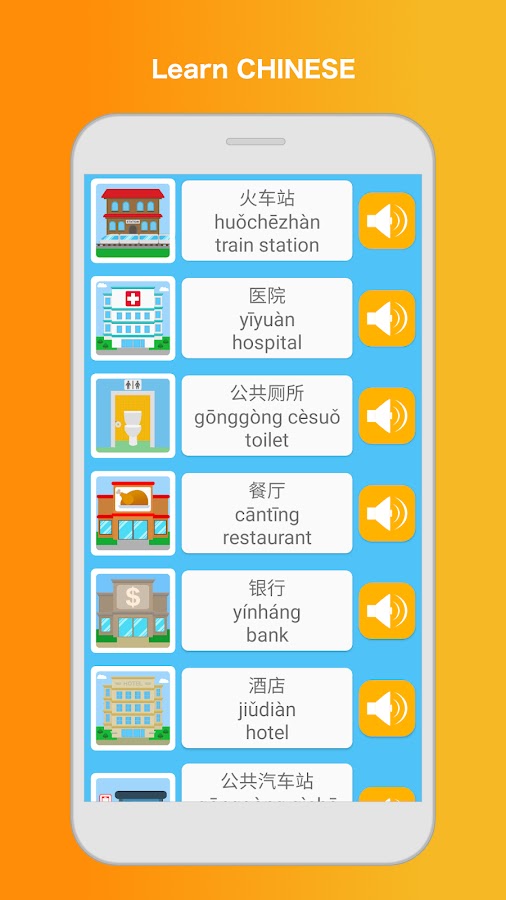 С помощью этого приложения для изучения китайского вы научитесь полезным фразам, охватывающим такие категории, как приветствия, общение, количество, хобби, проживание, прилагательные, животные, цвета, одежда, страны, направления, аварийные случаи, пища, языковые трудности, вопросы, фразы, предложения и прочие на китайском.