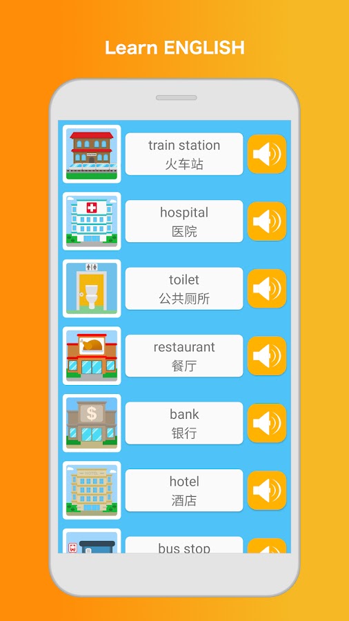 С помощью этого приложения для изучения английского вы научитесь полезным фразам, охватывающим такие категории, как приветствия, общение, количество, хобби, проживание, прилагательные, животные, цвета, одежда, страны, направления, аварийные случаи, пища, языковые трудности, вопросы, фразы, предложения и прочие на английском.