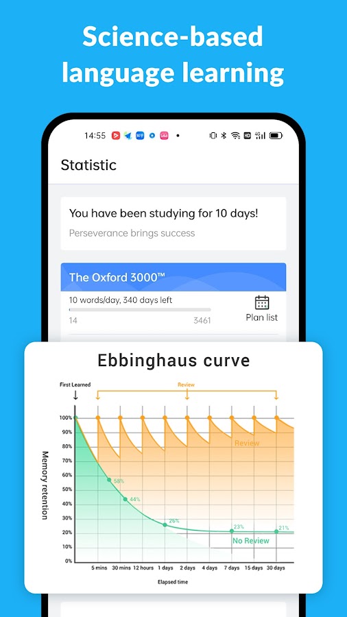 Learn English Vocabulary Recite 10000 Words — это приложение, основанное на искусственном интеллекте и теории забывания Эббингауза✌️, которое поможет вам легко и быстро учить и запоминать английские слова🚀;